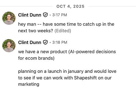 Shapeshift started as a founder brand business. I had just shut down a failed podcast software startup and needed cash — so I knew I had to sell services.